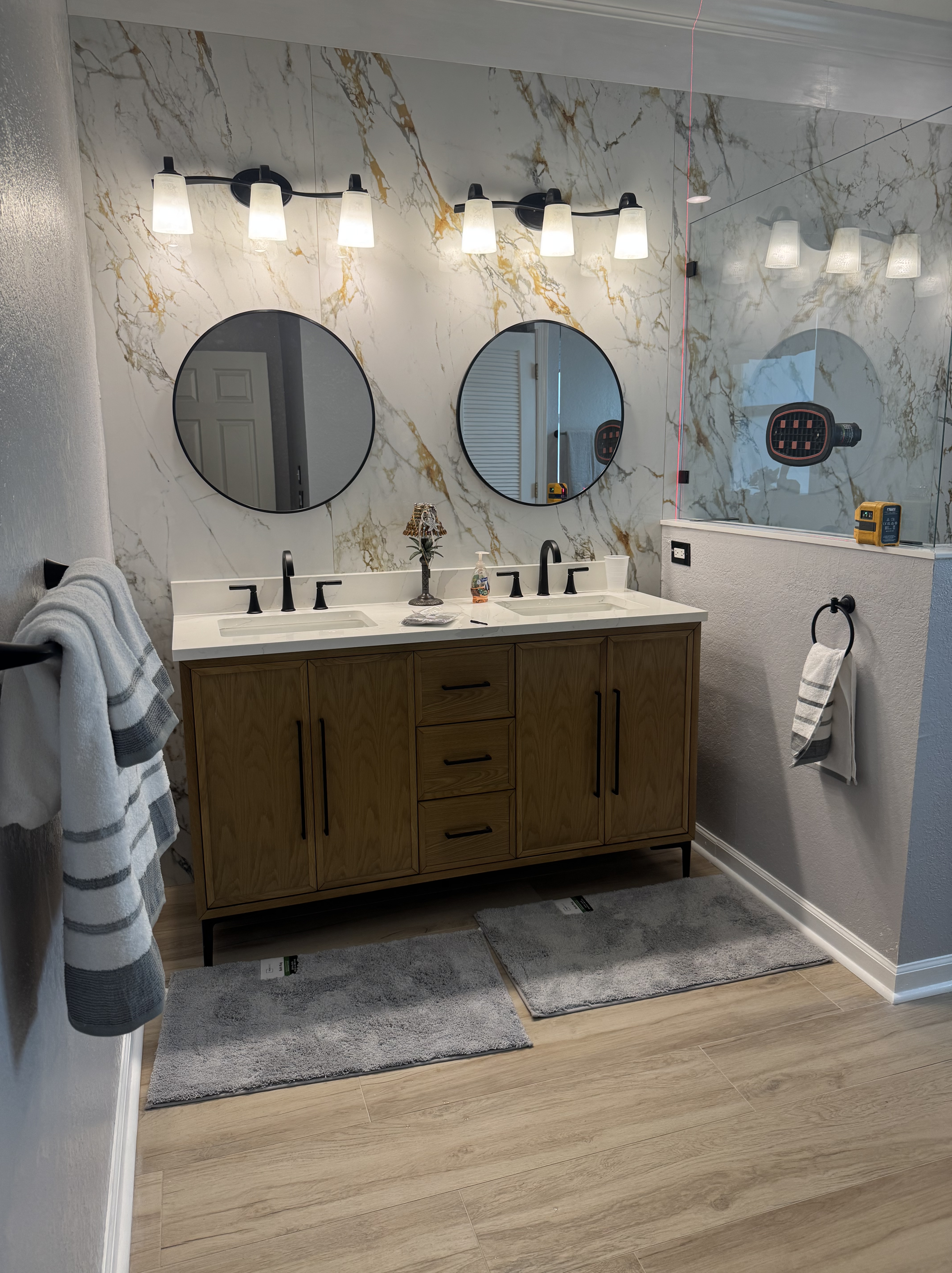 Marcello and his crew were selected by us to retile/remodel our two bathrooms and laundry room and, we could not be more pleased with quality of this company’s work. They went above and beyond to see that we were more than satisfied with the finished product. Marcello even went so far as to assist us in selecting the tiles at Floor & Decor who had referred him and his company to us. Floor & Decor did well to refer Marcello to us as the customer service that he provides and the seamless way that he works with F&D makes remodeling a most pleasant experience. Highly recommended.